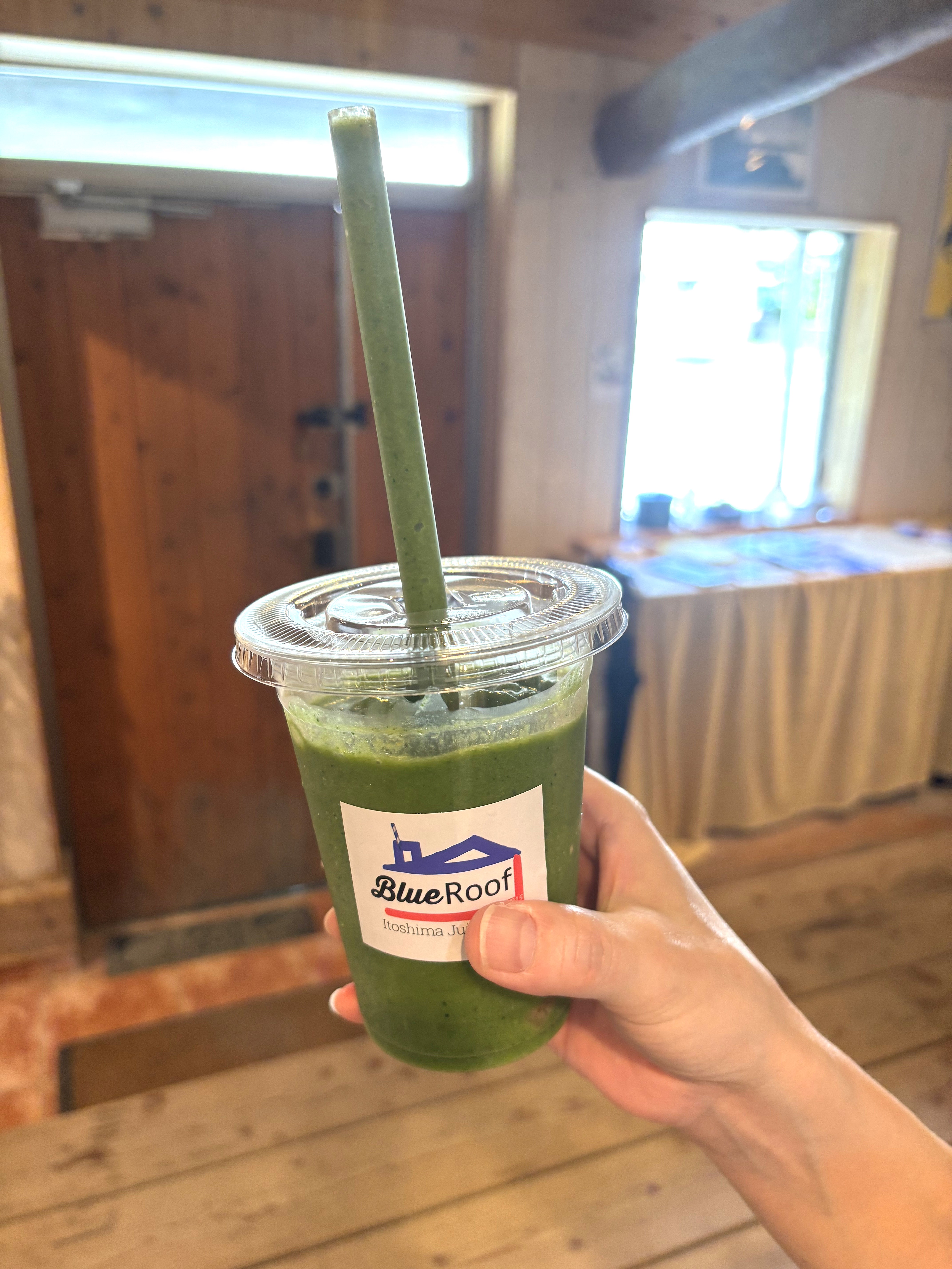 今回いただいたのは「ベジタブルスムージー」。ケールや小松菜、バナナなど、素材の味が絶妙なバランスで調和しており、濃厚でありながら後味はすっきりと爽やか。自然な甘みがやさしく広がり、身体にも心にも嬉しい一杯でした。