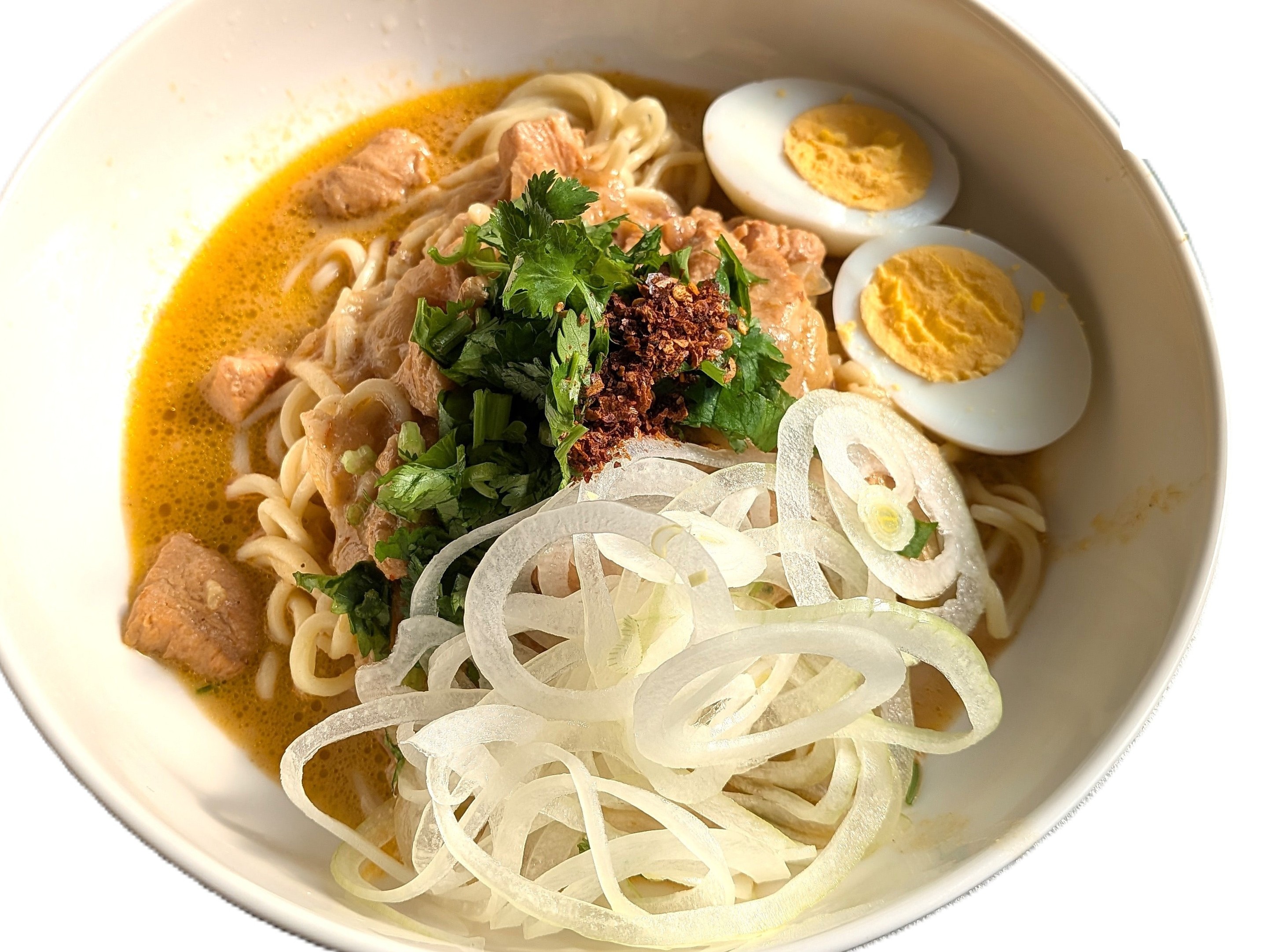 オンノ・カウスウェ今回、そのスタッフが心を込めて作ってくれたのが、ミャンマーの伝統的な麺料理「オンノ・カウスウェ」です。