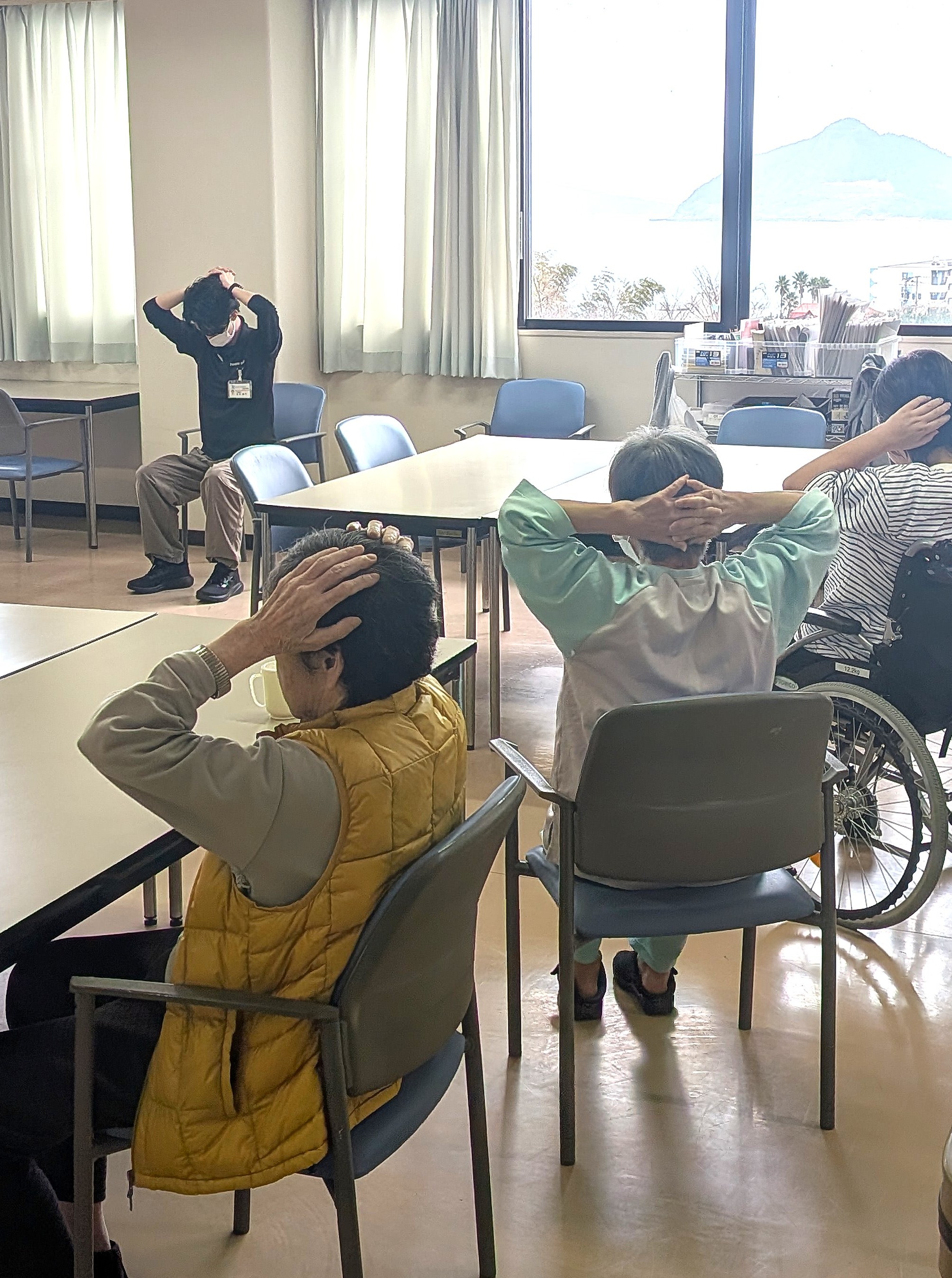 さらに、海を見渡せる明るく広々とした開放的なホールで体を動かせることも、当院ならではの魅力の一つです。自然光に包まれた空間で行う体操は、心身のリフレッシュにもつながっています。