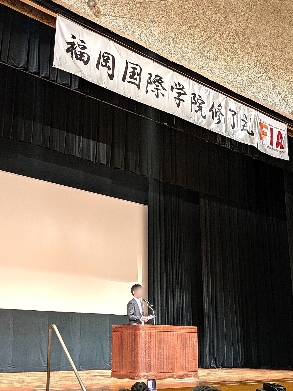 修了証書授与学校代表の祝辞では、幕末の志士・高杉晋作の辞世の句「おもしろきこともなき世をおもしろく住みなすものは心なりけり」が紹介されました。その意は、「この世界が面白いかどうかは、自分の心の持ちよう次第」というもの。それになぞらえて、「辛いときには、この学校や仲間のことを思い出してください。離れていても、仲間であることに変わりはありません」との言葉が贈られました。それを聞く修了生の一人ひとりの眼差しは真剣そのもの。言葉に込められた思いが胸に深く響いている様子でした。