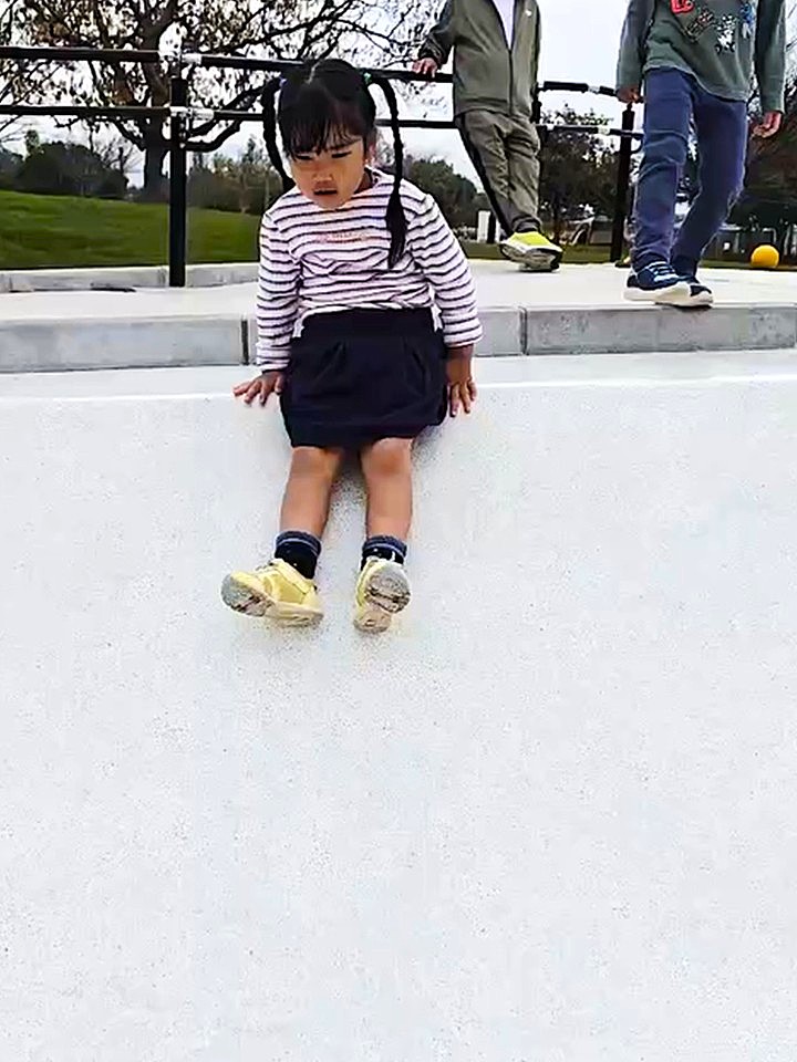 3つ目にご紹介するのは滑り台です。円形で、すり鉢状になっているのが特徴的。おかげで何人ものお友だちと一緒に滑ることができます。一人で滑るより会話が増え、知らないお友だちとも自然と仲良くなれそうです。また、どこに滑り落ちても安全な設計になっているところも嬉しいポイントでした。