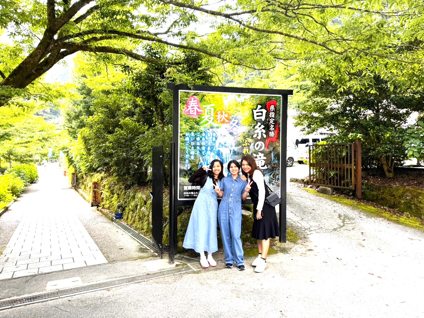というわけで、今回はミャンマー出身のスタッフ3名と共に、白糸の滝をご紹介します。