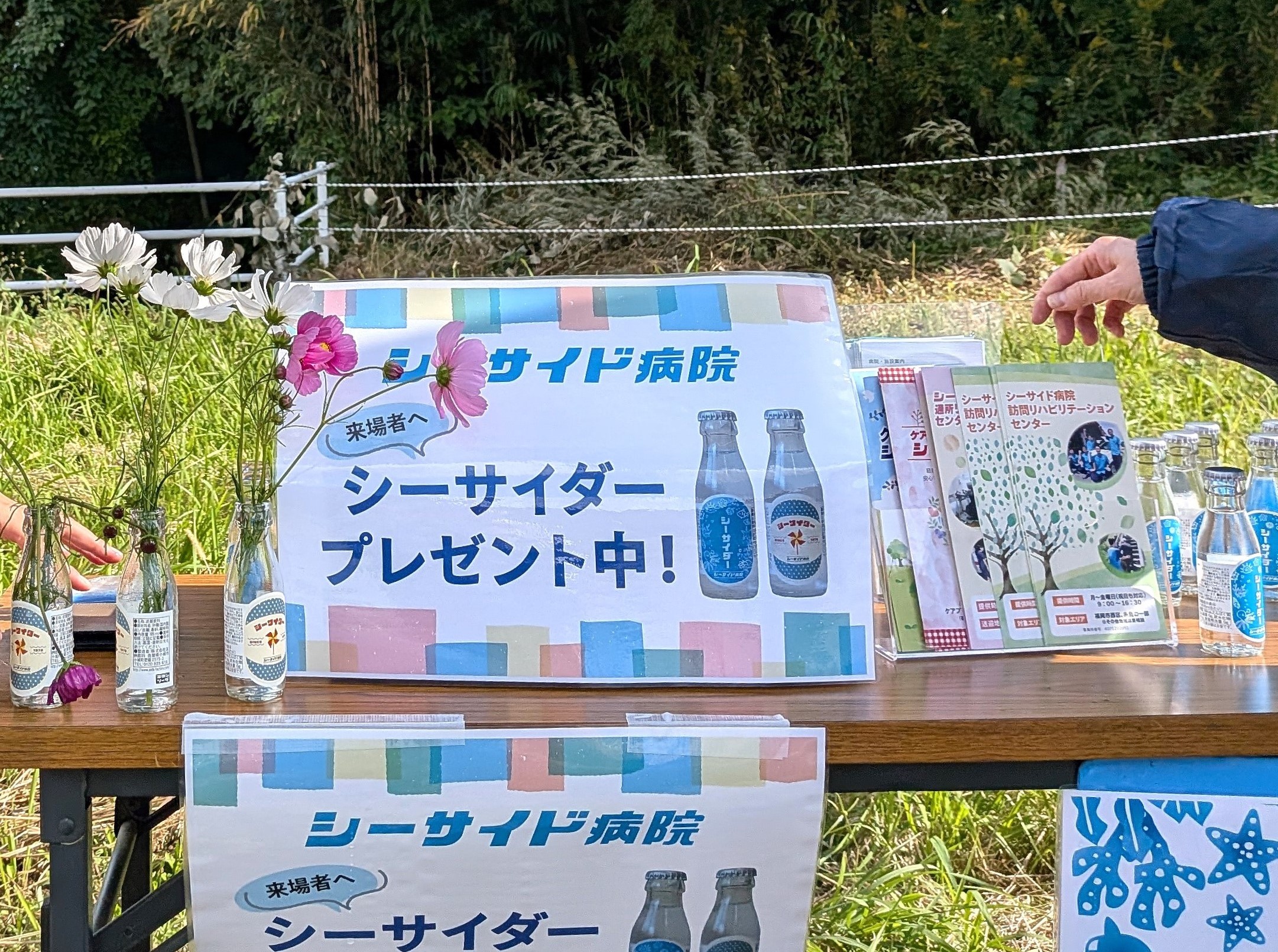 また、今年はJA福岡市様よりポップコーンや蒸し芋の無料配布がありました。一方、隣接する当院の駐車場では同法人・シーサイド病院による「シーサイダー」のプレゼントや、キッチンカーによるハンバーガーやスイーツの販売も。そこかしこで訪れた方々の笑顔が咲き、会場は終日大いに賑わいを見せました。