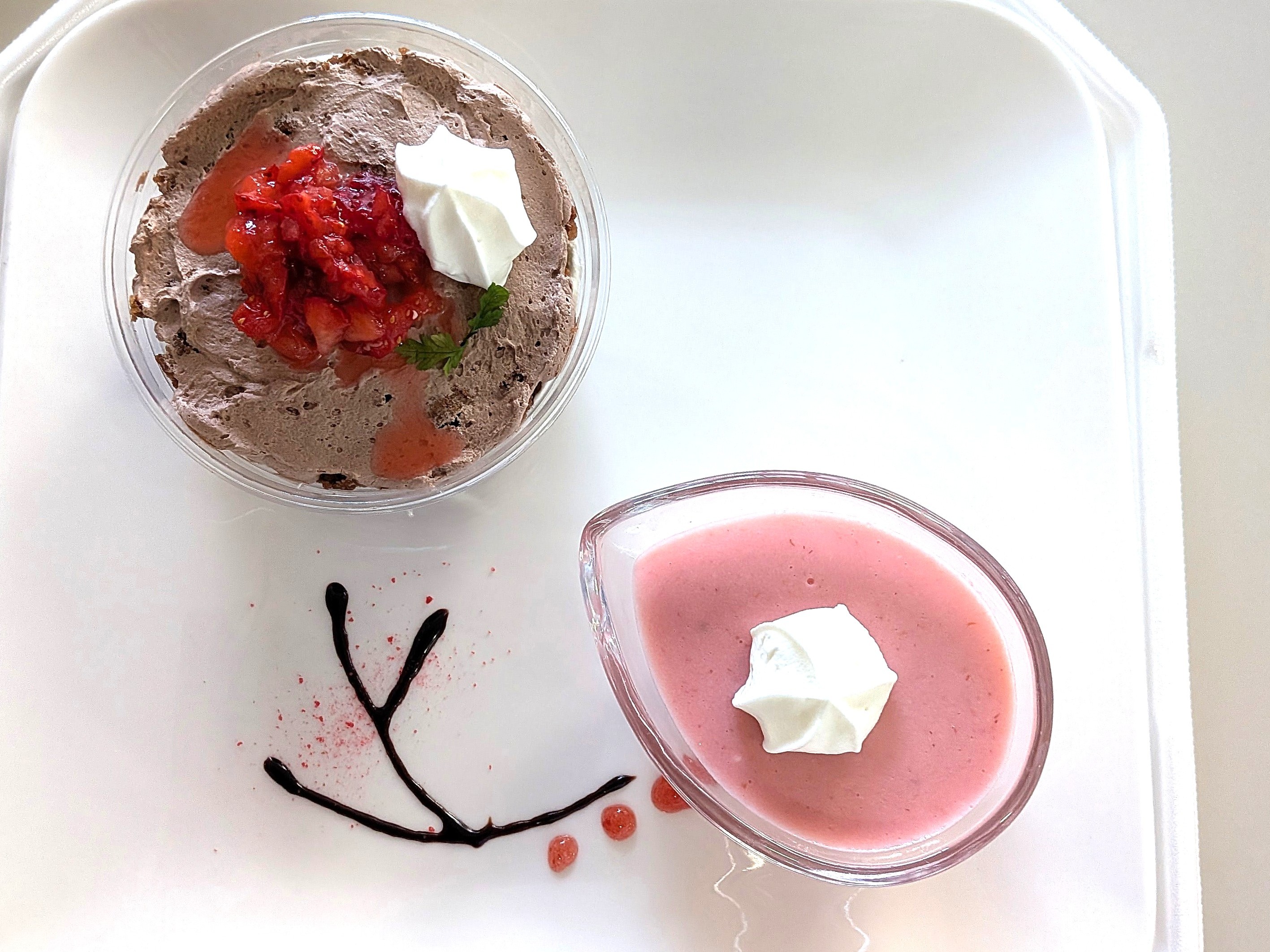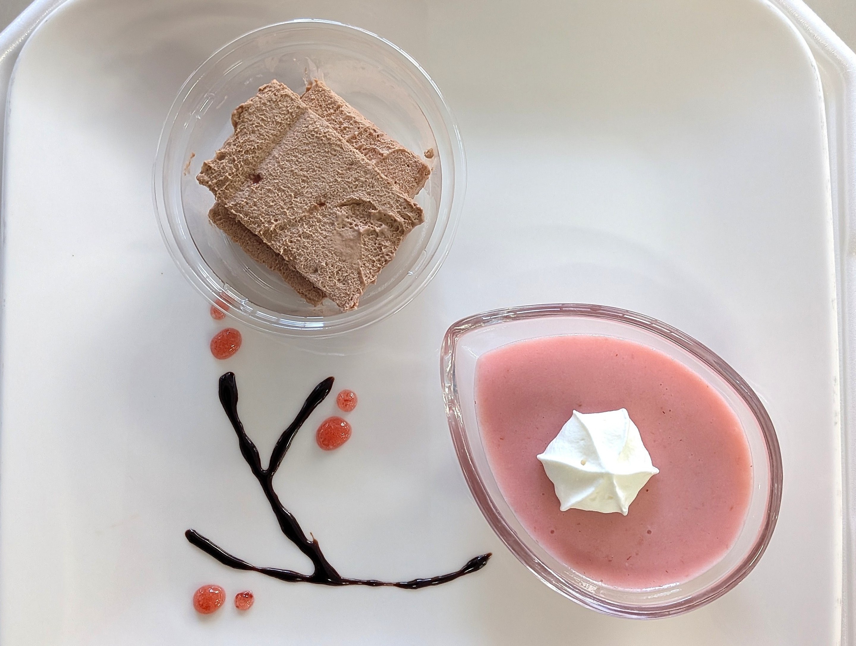 「病院のイベント食は毎月とても楽しみにしていました。スイーツが大好きなので、今月はどんなケーキが出るのだろうとワクワクしていました。本当においしくて、既製品ではないことがすぐに分かります。イチゴのムースは、まさに“イチゴ”。すごいイチゴです。これは他の患者さんもきっと喜ばれると思います。」