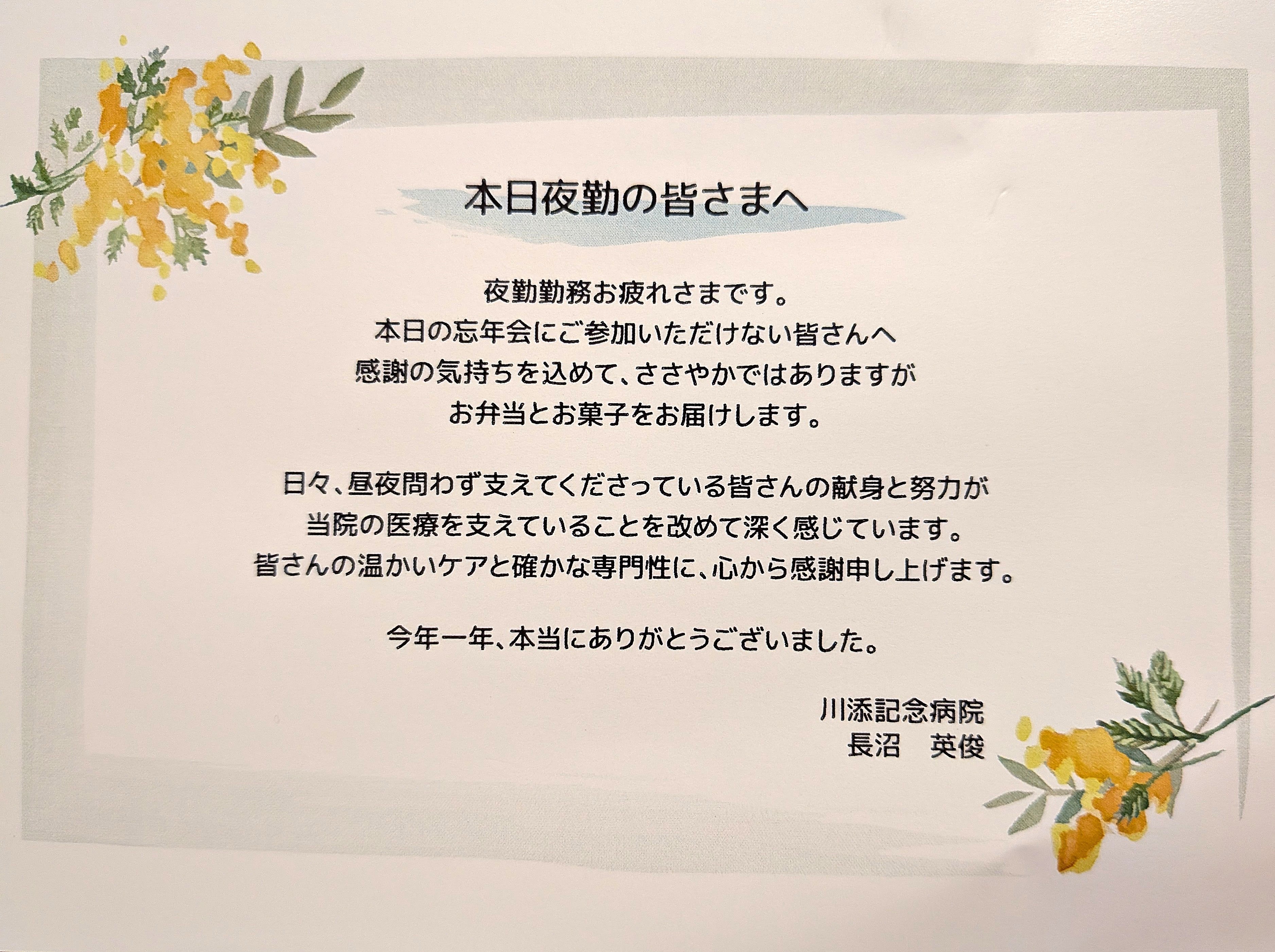 忙しい毎日の中でも、食やメッセージを通して気持ちを分かち合う。今回は、そんな当院ならではの思いやりのかたちをご紹介しました。