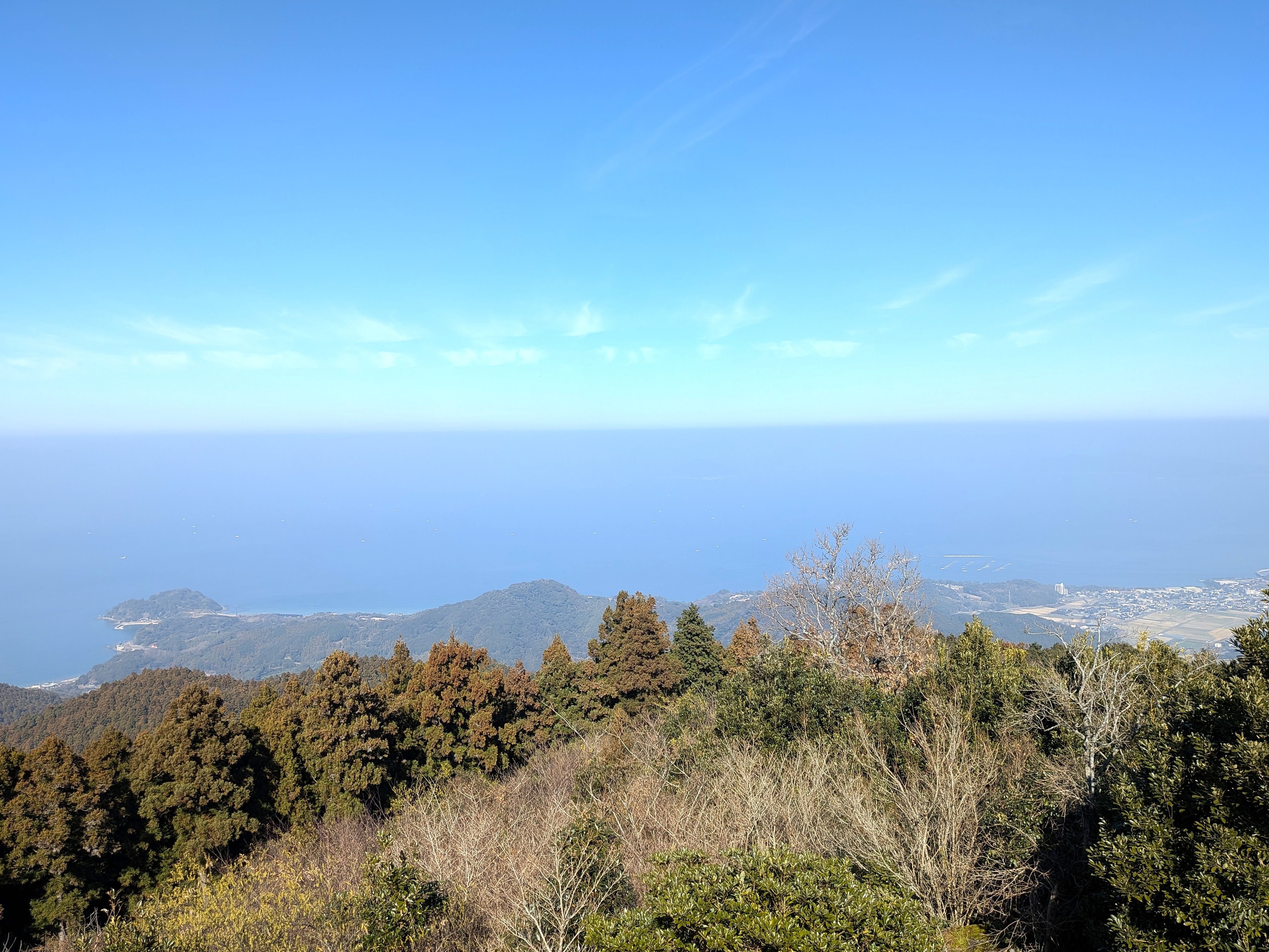 途中で休憩をはさみながら、35分の道のりを45分ほどかけて登りきると、突然視界が開け、目の前にそびえ立つような巨石が現れます。その名は坊主岩。備えつけてある鎖を頼りに岩をよじ登ると、360度の絶景が広がっていました。高所恐怖症の私は、足がすくみ、岩の上に腰を下ろすだけで精一杯でしたが、岩上に立つ姿はインスタ映え必至のスポットです!そこから西側を見渡せば、虹の松原の美しい海岸線が一望できます。空気が澄んでいれば、壱岐、対馬の島影も見えるそうです。東側には浮岳、女岳、二丈岳が連なり、雄大な山の景色が広がります。気軽に絶景が楽しめる十坊山は、家族連れにもおすすめの山です。