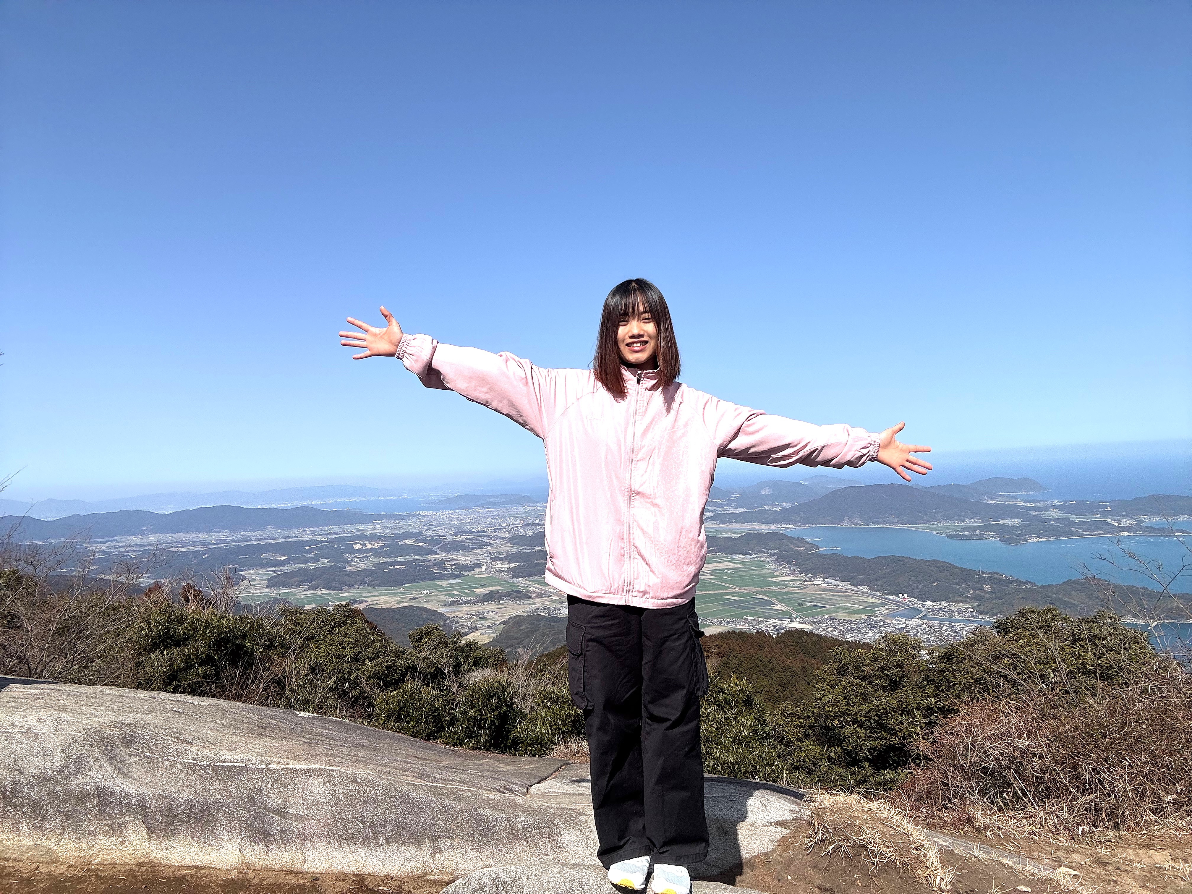 再び歩き出したものの、次第に足が重くなり、息も上がります。段々言葉数も少なくなり、休憩をはさみながら少しずつ前へ。そして急に視界が開けた途端、眼前に広がった360度の大パノラマ!風が優しく頬を撫で、遠くの島までくっきりと見渡せるその景色に、思わず言葉を失います。きつかった道のりも、気が付けば「また来たい!」と思う、それが二丈岳です。そして今、まさに春の登山シーズン真っ只中。皆さんも是非、二丈岳で登山を楽しんでみられてはいかがでしょうか。