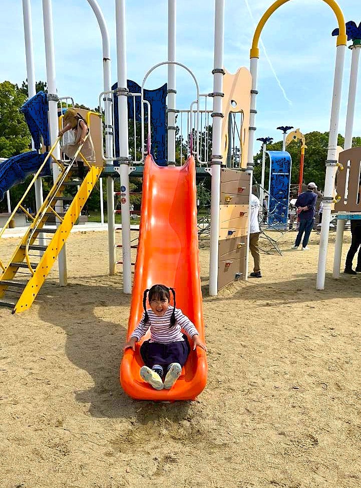 今津運動公園新しいちびっこ広場のコンセプトは「インクルーシブ」。年齢や性別、文化はもちろん、障害の有無や発達の程度など、あらゆる立場を越えて、全ての人々が等しく利用し、ともに楽しむことを目指しています。設置されている遊具にも、まさにこの理念が体現されているようでした。